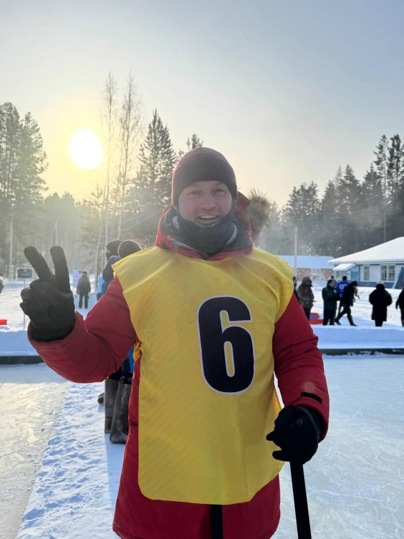 Тут вот участвует в чиновничье-депутатском турнире на валенках в Зиминском районе.