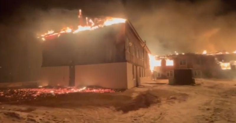 Пожар начался глубокой ночью. Судя по кадрам видео в канале мэра, школа сгорела полностью. В ней обучалось 70 учеников – дети из пяти сёл Ахинского муниципального образования. 32 ученика учились в начальной школе, с 1 по 4 классы.