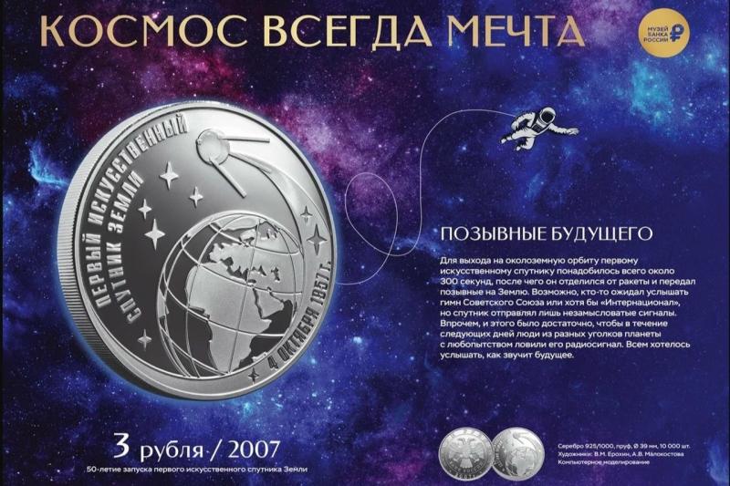 Выставка знакомит с тем, как история освоения космоса отражена в памятных монетах. Посетители увидят, как в металле запечатлены знаковые моменты отечественной космонавтики: полёт Юрия Гагарина, работа космодрома Байконур, история смелых космических проектов и многое другое. Рядом с изображениями монет приведены их характеристики и краткая справка о событиях, связанных с покорением Вселенной. Часть монет была выпущена большими тиражами, однако есть и редкие экземпляры.