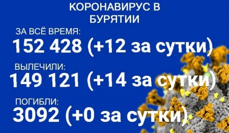 По данным на 14 ноября, еще 12 человек в Бурятии заболели коронавирусом. Также за сутки 14 пациентов выздоровели. Летальных исходов зарегистрировано не было. Об этом сообщает пресс-служба регионального Роспотребнадзора.