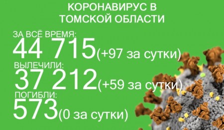 В Томской области по состоянию на 11 октября зарегистрировано 44 715 случаев заражения коронавирусом. В минувшие сутки заболевание выявили у 97 человек. С начала эпидемии излечились 37 212 человек. 59 пациентов выздоровели за сутки с 10 по 11 октября.
