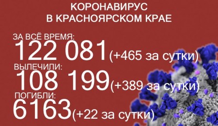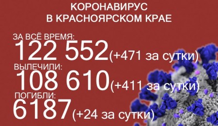 По данным на 16 октября, в Красноярском крае 122 552 случая заражения коронавирусом. За последние сутки выявили 471 новый случай. За всё время выздоровело 108 610 человек, в том числе 411 за последние сутки. Количество погибших достигло 6187. Скончались ещё 24 пациента с COVID-19.