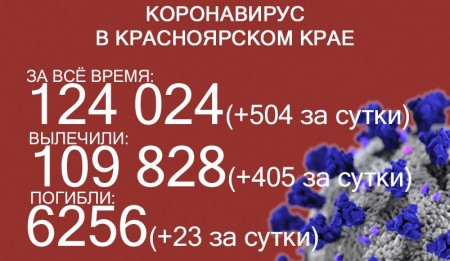 19 октября число ковидных смертей в Красноярском крае достигло 6256, за последние сутки скончались 23 больных коронавирусом. За сутки выявили ещё 504 заболевших – впервые с 22 июля суточный прирост стал больше 500. За всё время пандемии COVID-19 выявили у 124 024 жителей края.