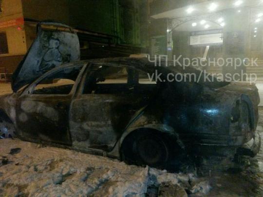 Иномарка сгорела в центре Красноярска. Водитель едва успел спастись