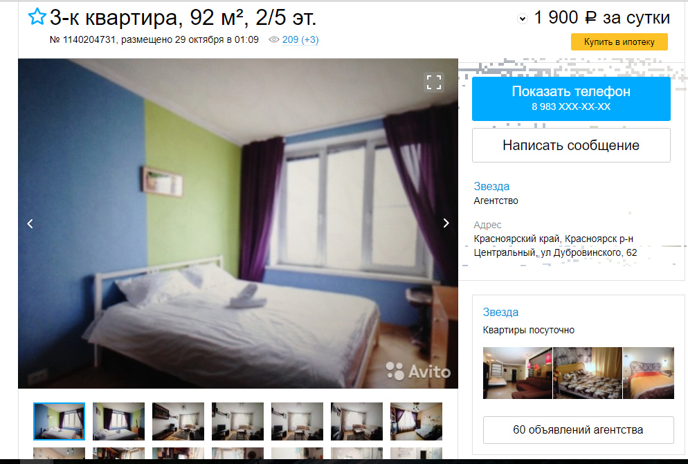 Как мы поняли из дальнейших консультаций по этой теме, схема работы "риелторов", сдающих квартиры посуточно в Красноярске, крайне примитивна, но эффективна. В интернет выставляется отличное предложение по скромной цене - например, трехкомнатная квартира с евроремонтом за 1500 в сутки в самом центре. Причем этой квартиры может даже не существовать в природе. Квартира "бронируется" за клиентом, а когда тот, уставший с дороги, уже стоит перед подъездом, вдруг "выясняется", что предыдущие жильцы продлили квартиру. Или в агентстве "забыли" ее забронировать.