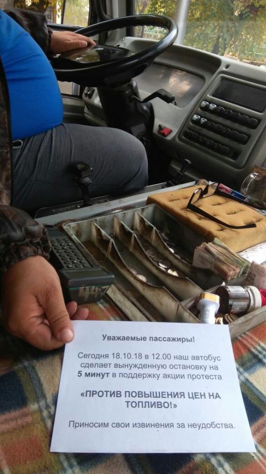 18 октября в 12:00 несколько красноярских маршрутов совершили вынужденную остановку в знак протеста против повышения цен на топливо.