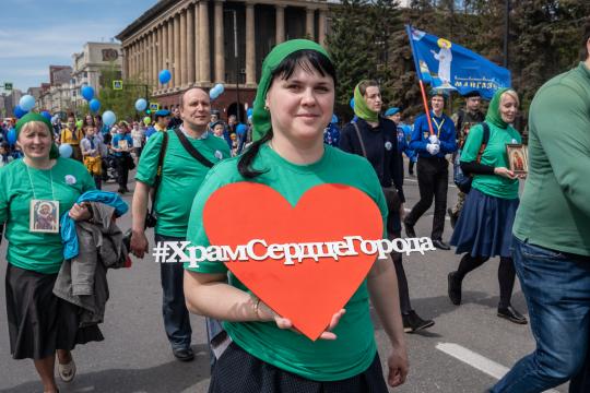 Крестный ход проходил под названием «Я за храм», некоторые шествующие несли надписи #ЯзаХрам и #ХрамСердцеГорода. Речь шла о храме на Стрелке. Строительство этого храма очень горячо обсуждается уже второй год подряд. И в последнее время информация о строительстве вызывает все больше негатива со стороны красноярцев.