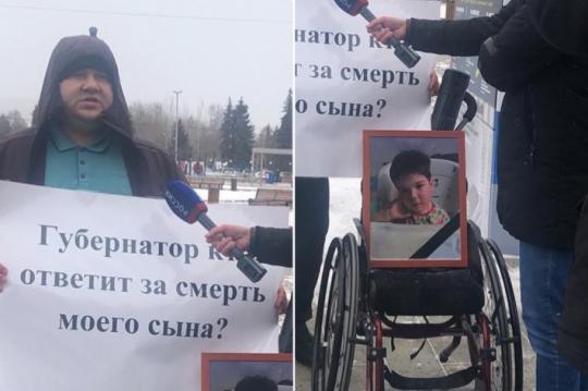 Мужчина пикетирует у здания администрации Красноярского края из-за смерти сына
