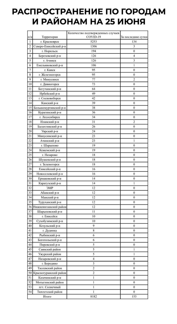 По данным на 25 июня, за сутки в крае выявили COVID-19 еще у 153 человек. Темп прироста за сутки составил 1,9 %.