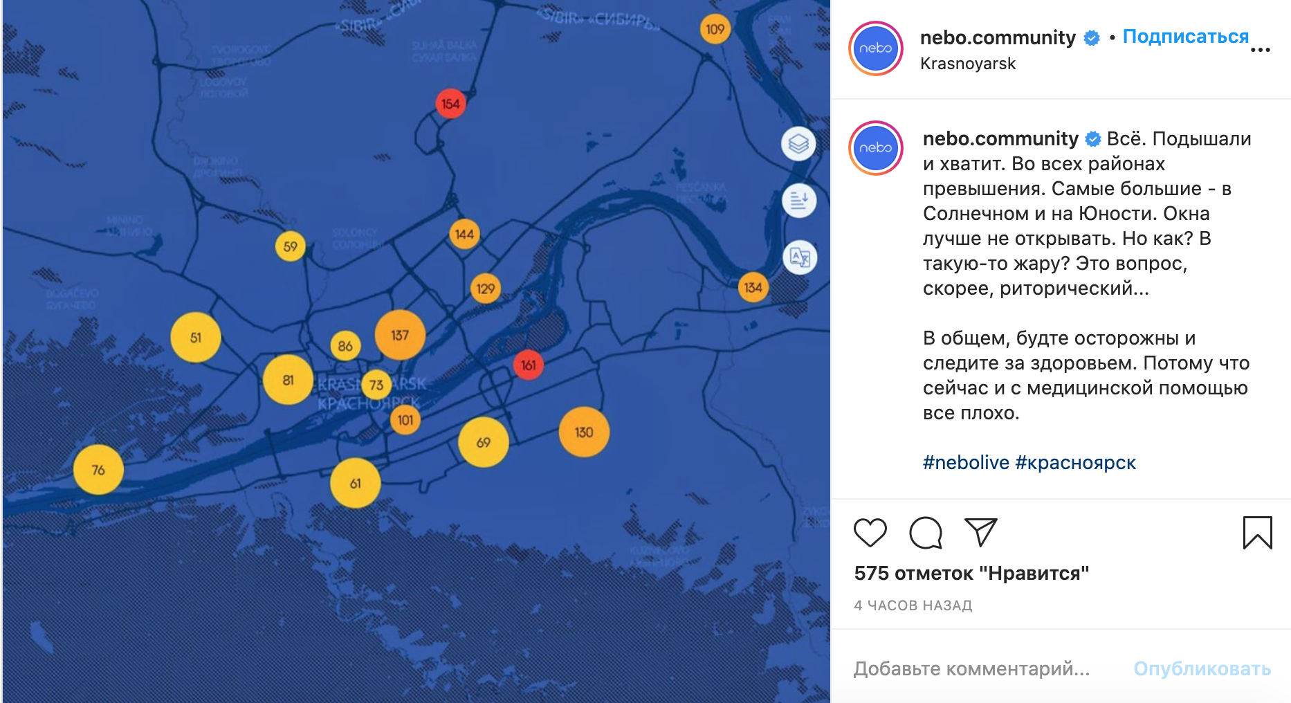 О загрязнении сообщают в соцсетях. При этом красноярцы не могут определить источник неприятного запаха. Одни предполагают, что он появился из-за выбросов производств, другие считают, что всему виной лесные пожары.