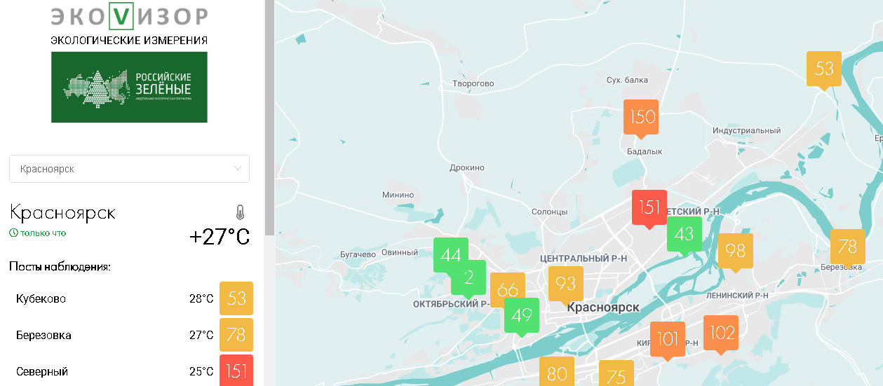 Датчики проекта «Красноярск.Небо» показывают загрязнение почти во всех районах города.