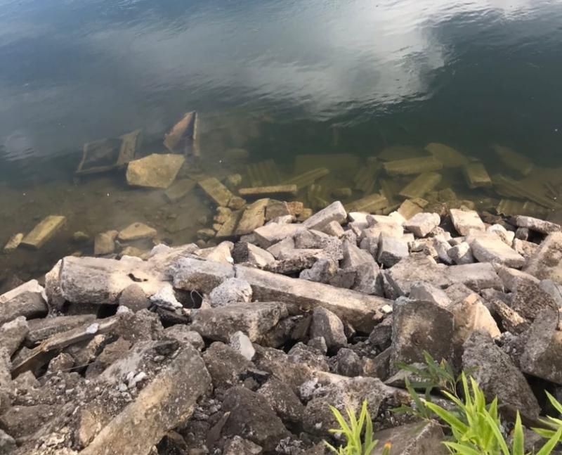 Местный житель съездил на это место, мусор так никто и не убрал. Он рассказал, что в реке лежат остатки бетона, асфальта и бордюрные камни. Он предположил, что в Енисей сбрасывают мусор после дорожного ремонта.