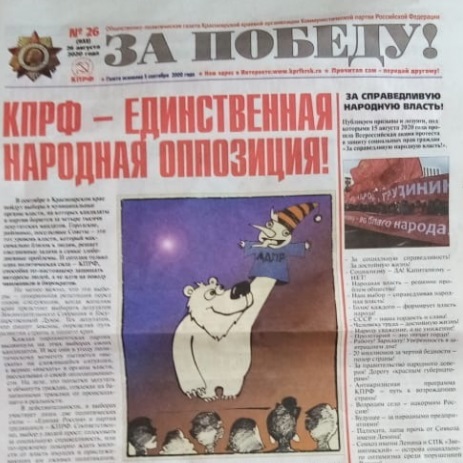 КПРФ решила напомнить о своем существовании посредством выпуска партийной газеты «За правду!» – тираж в количестве 350 тысяч экземпляров был распространен по практически всем городам и весям обширного Красноярского края. Данный образчик предвыборной агитации, помимо своей массовости, интересен следующей особенностью – коммунисты решили отказаться от привычной риторики с критикой партии власти. Вместо этого главной целью для громких обвинений и острых высказываний стали так называемые коллеги по системной оппозиции – ЛДПРовцы.