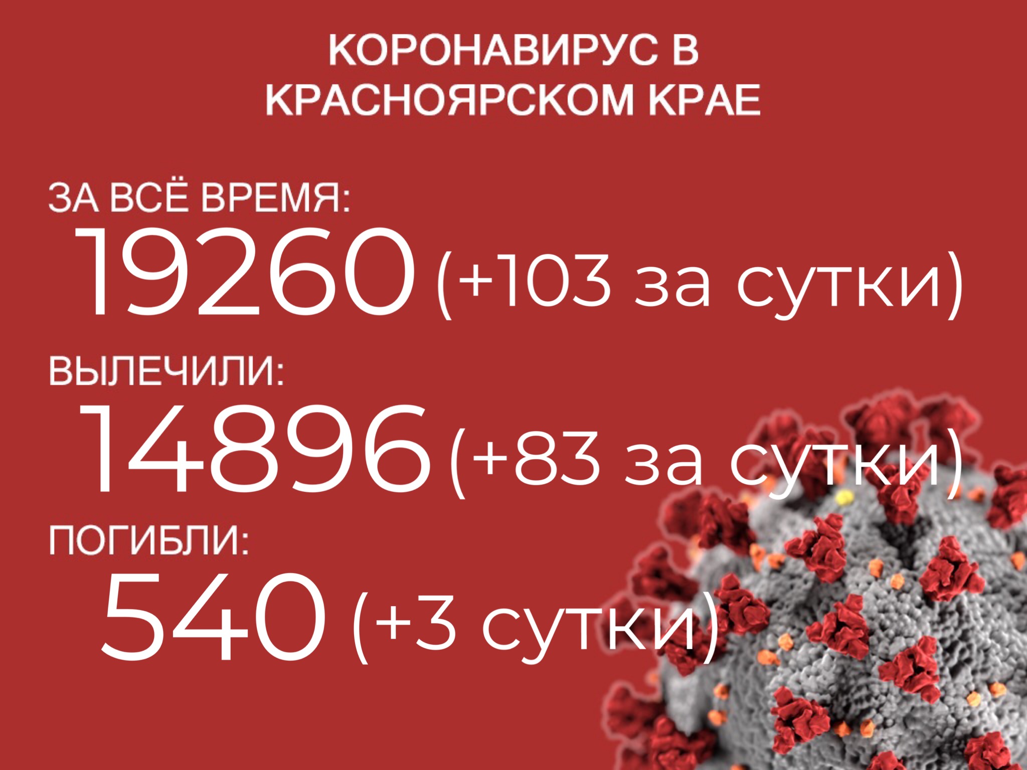 Всего с начала пандемии в Красноярском крае лабораторно подтверждены уже 19260 случаев заражения COVID-19.