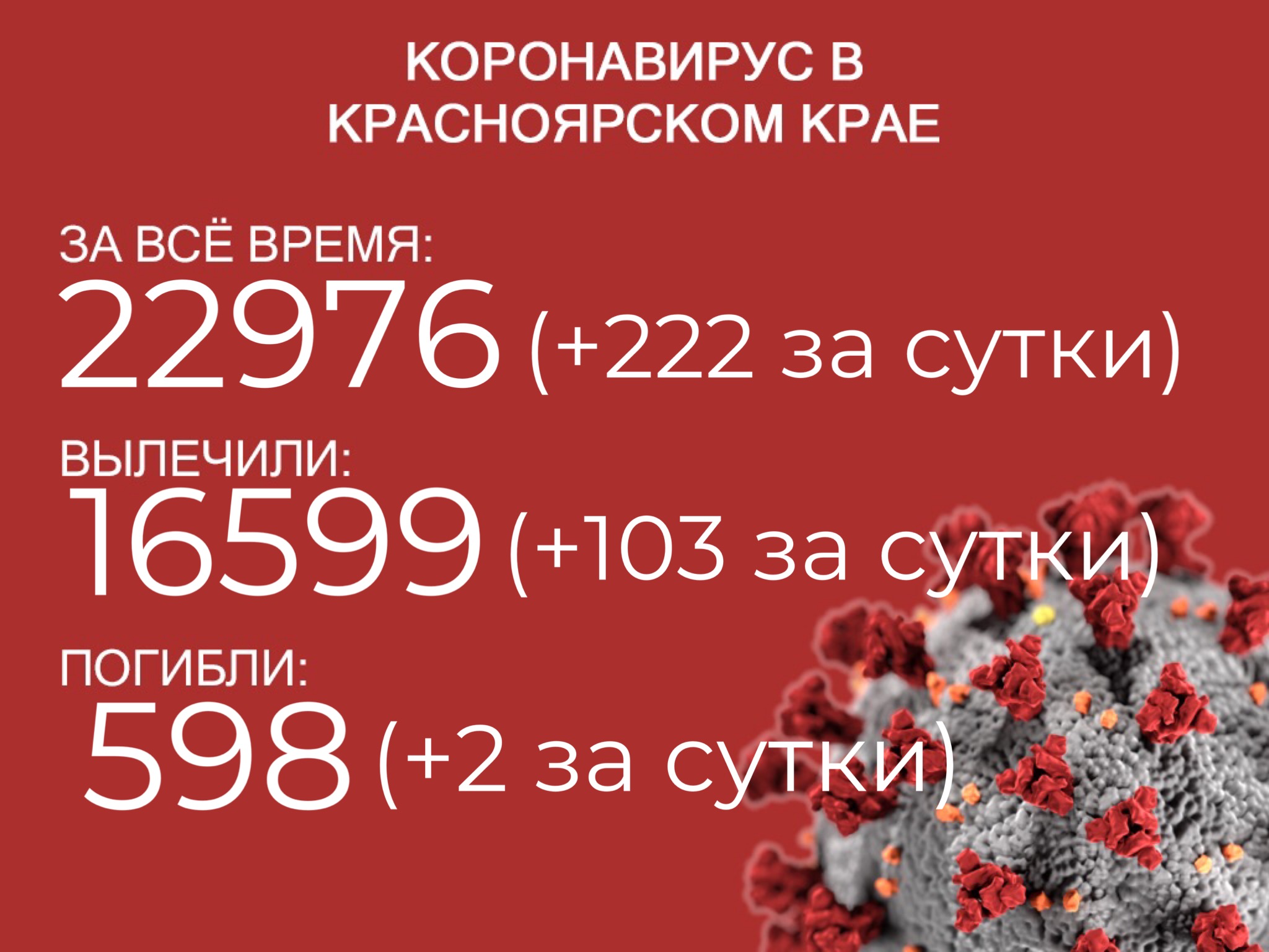 В Красноярском крае за сутки выявили 222 человека с COVID-19. Двое скончались