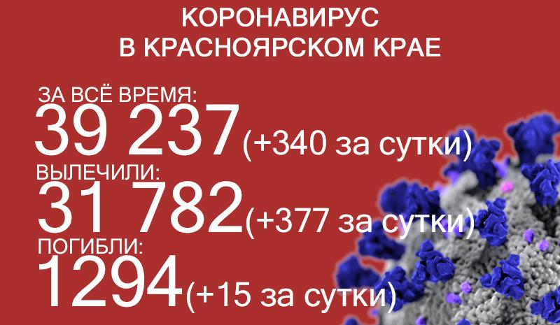 По данным на 9 декабря, в Красноярском крае 39 237 случаев заражения коронавирусом. Суточный прирост — 340, темп прироста — 0,9%.