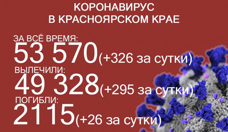По данным на 22 января, в Красноярском крае 53 570 случаев заражения коронавирусом. Суточный прирост — 326, темп прироста — 0,6%.