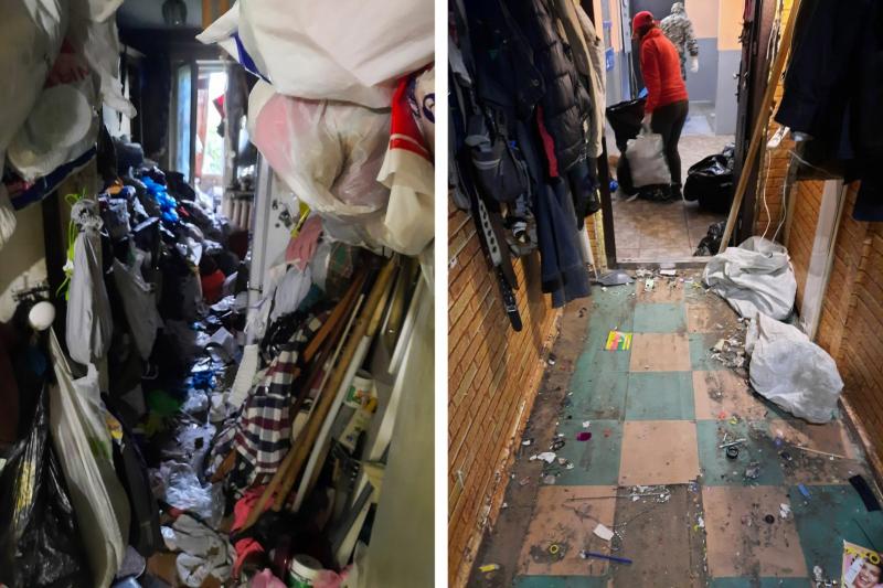 Квартира находится на первом этаже дома, в ней живёт пожилой мужчина. Ранее он притаскивал в жилище различный хлам, в результате квартира оказалась заполнена мусором. Соседи сообщали о тараканах и вони из помещения. Собственник долго не хотел пускать никого внутрь, но в итоге пообещал убрать мусор.