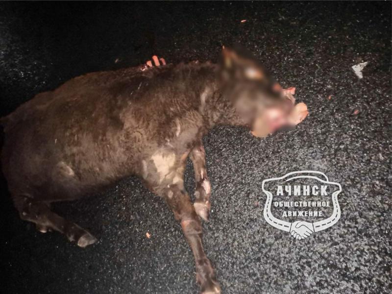 ДТП произошло вечером 24 октября на трассе в сторону Ачинска. По данным полиции, «Хонда Цивик» врезалась в одну из коров, которые вышли на проезжую часть. После этого «Тойота Королла» столкнулась с другой коровой, затем «Рено Дастер» наехал на тушу уже погибшего животного. Люди не пострадали.