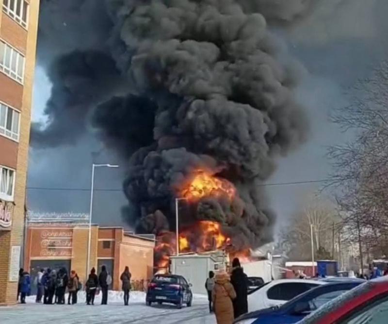 В Красноярске сгорела шиномонтажка. Дым было видно со всех концов города. Видео
