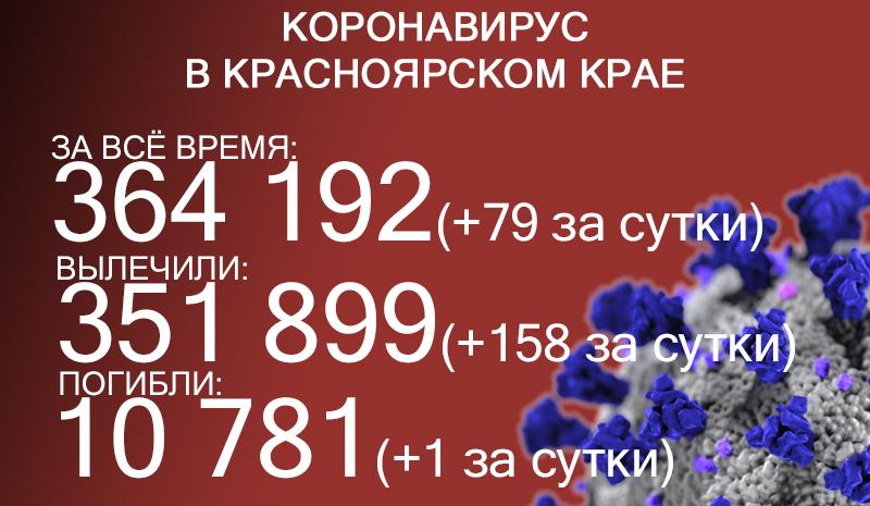 По данным на 2 мая, в Красноярском крае 364 192 случая заражения коронавирусом. За последние сутки выявили 79 заболевших.