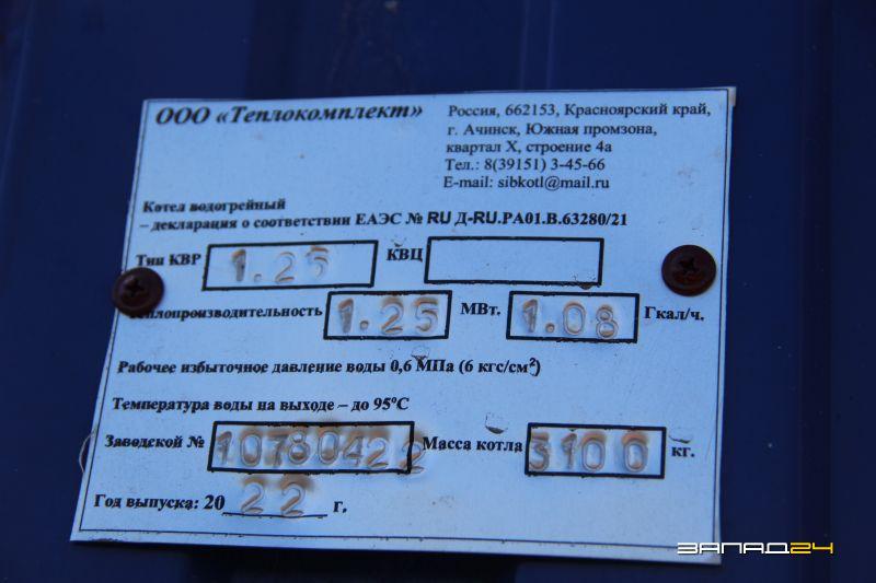 Как информирует ЕДДС, при проведении гидравлических испытаний, которые проводили ресурсоснабжающие организации перед началом отопительного сезона, было выявлено аварийное состояние котельного оборудования в населенных пунктах: с. Красная Поляна, п. Красная Сопка, с. Павловка Назаровского района (множественные течи сварочных швов), в связи с чем администрацией Назаровского района девятого сентября 2022 года был заключен муниципальный контракт на поставку котельного оборудования взамен аварийных с ООО «Алтайский котельный завод Энергосервис».