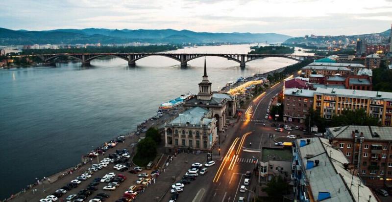 Речной вокзал расположен на левом берегу Енисея в 550 метрах от Коммунального моста.