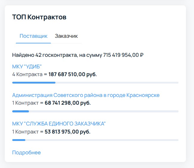 На госзакупках суммы куда внушительнее, за 2023 год у «Промстроя», как у подрядчика и субподрядчика, контрактов почти на два миллиарда рублей.