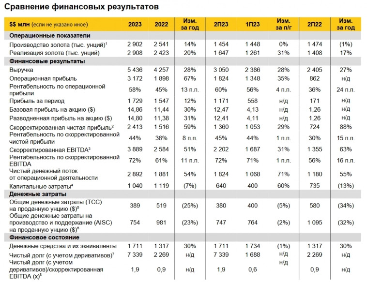 Золотодобывающая компания «Полюс» опубликовала данные о финансовых и производственных результатах за 2023 год.