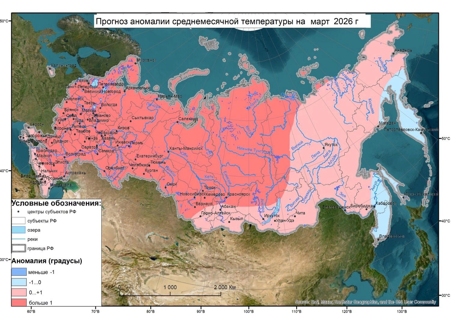 Завершится отопительный сезон заметным потеплением: в марте температура на большей части России превысит средние значения. В Красноярске она также будет выше нормы примерно на 1 градус и больше.