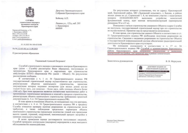 Ответ ведомства оказался неожиданным: разрешения на строительство нет, а уведомление о начале работ в Стройнадзор не поступало. По словам Бойкова, это означает, что с юридической точки зрения амбулатория считается самовольной постройкой, которую по закону могут обязать снести.