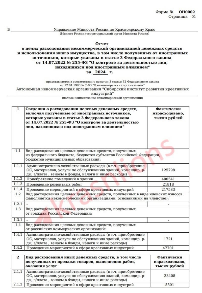 За прошлый год организация получила из бюджета 765,7 миллиона рублей. Из них 400,5 миллиона на покупку помещений — это была первая часть сделки по покупке «Галереи Енисей». Ещё 217,5 миллиона пошли на уставную деятельность: «проведение мероприятий в сфере креативных индустрий», чтобы это ни значило.