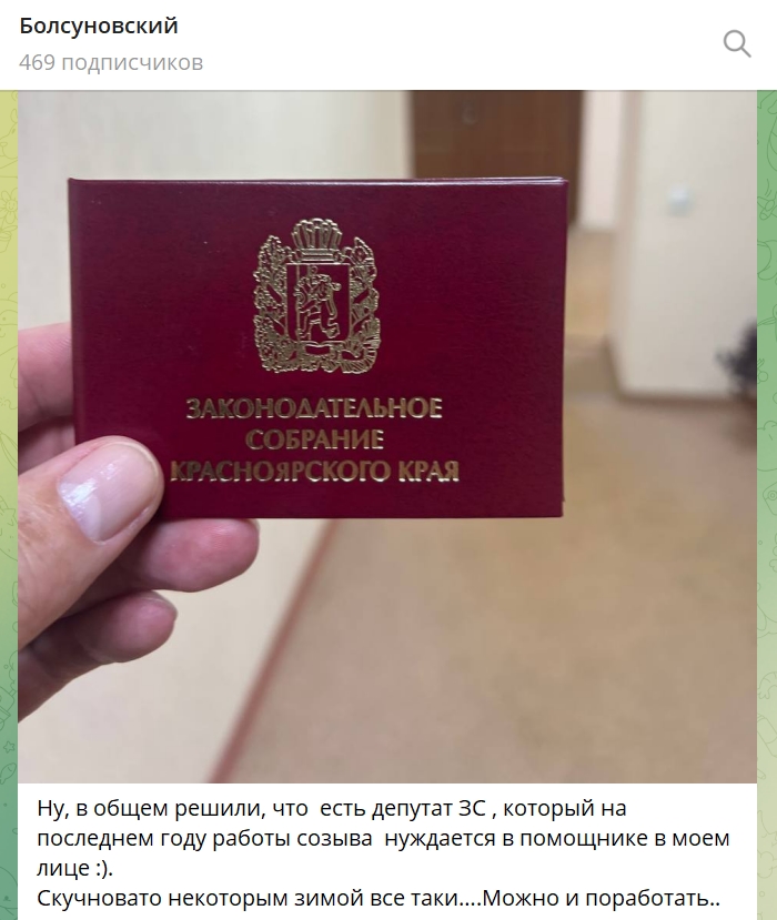 И пост с телеграм-канала фермера Болсуновского, что решили, что он станет помощником депутата Законодательного собрания края вызвал массу вопросов в профессиональной среде, а знакомые с «теневыми» схематозами фермера уверены в том, что с изменившейся налоговой политикой в стране, да и назначение новым министром сельского хозяйства края известного аудитора прежние схемы в получении самому бесчисленных грантов и также «слепить» чужие проекты стоимостью до 10% тоже логично предположить, что должны уйти в небытие.