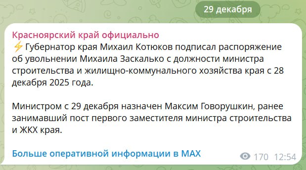 Неожиданной новостью в конце 2025 года стало увольнение министра строительства и ЖКХ края Михаила Заскалько за день до его задержания.