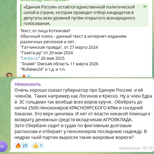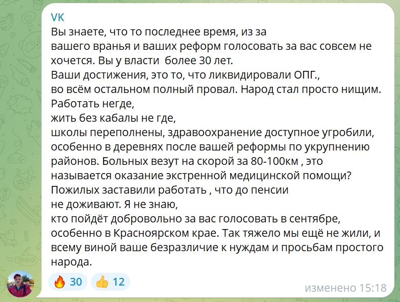 Так, люди пишут, что уже чувствуют «заботу» ЕР повышением тарифов и цен, спрашивают, когда будет уголовная ответственность избранникам за невыполненные в срок обещания. Кто-то пишет, что не хочет голосовать за ЕР, потому что её действия, инициативы и законы – дурацкие, и что партия всегда против простого народа.
