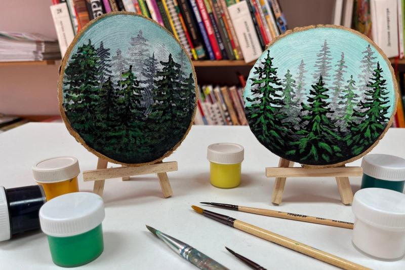 Участники рассмотрят образ тумана в произведениях русских классиков: Тургенева, Салтыкова-Щедрина, Горького, Короленко. Затем с помощью акриловых красок на спилах дерева гости изобразят свой загадочный туманный лес. Посетители самостоятельно создадут эскиз будущей композиции, научатся рисовать на нестандартной поверхности (спиле дерева) и узнают, как работать в технике последовательного нанесения рисунка.
