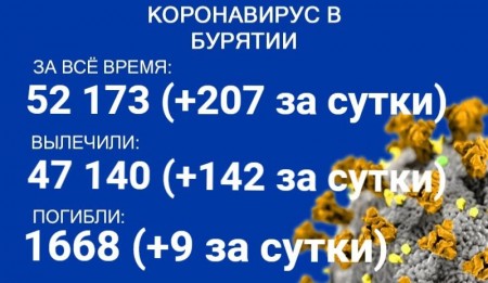 По данным на 29 июля, еще 207 человек в Бурятии заболели COVID-19. Также за сутки 142 пациента выздоровели, еще девять скончались. Об этом сообщает пресс-служба регионального Роспотребнадзора. В настоящее время лечение в стационарах проходят 1062 человека с коронавирусом и подозрением на него.