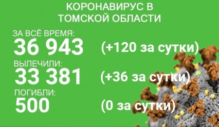 По состоянию на 29 июля в Томской области коронавирус зарегистрирован у 36 943 человек. За сутки с 28 по 29 июля заболевание выявлено у 120 человек. В минувшие сутки выздоровели 36 пациентов. За все время эпидемии излечились 33 381 человек.