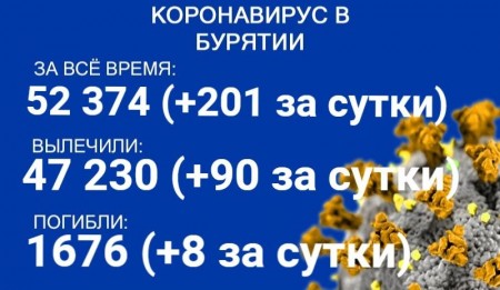 По данным на 30 июля, еще 201 человек в Бурятии заболел COVID-19. Также за сутки 90 пациентов выздоровели, еще восемь скончались. Об этом сообщает пресс-служба регионального Роспотребнадзора. В настоящее время лечение в стационарах проходят 1023 человека с коронавирусом и подозрением на него.