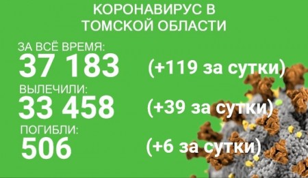 По состоянию на 31 июля в Томской области зарегистрировано 37 183 заразившихся коронавирусом. За сутки с 30 по 31 июля заболевание выявили у 119 человек. С начала эпидемии излечились 33 458 пациентов. За последние сутки выздоровели 39 человек.