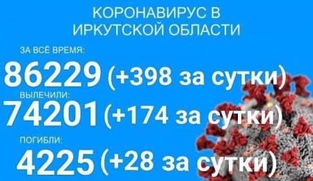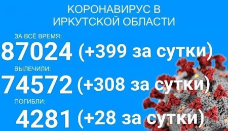 По данным оперштаба Иркутской области на 3 августа, в регионе зарегистрировано 87024 официально подтверждённых тестами случаев заболевания коронавирусом. Прирост за сутки составил 399 новых случаев, в том числе 10 вахтовиков и 34 ребёнка до 17 лет. Всего в Прибайкалье болеет коронавирусом 713 детей.