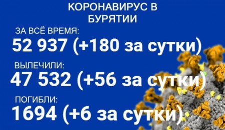 По данным на 2 августа, еще 180 человек в Бурятии заболели COVID-19. Также за сутки 56 пациентов выздоровели, еще шесть скончались. Об этом сообщает пресс-служба регионального Роспотребнадзора. В настоящее время лечение в стационарах проходят 932 человека с коронавирусом и подозрением на него.