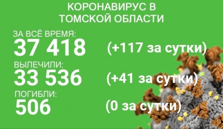 По состоянию на 2 августа в Томской области зарегистрировано 37 418 случаев новой коронавирусной инфекции. У 117 человек заболевание выявлено в минувшие сутки. С начала эпидемии в регионе излечились 33 536 пациентов. 41 человек выздоровел в последние сутки.
