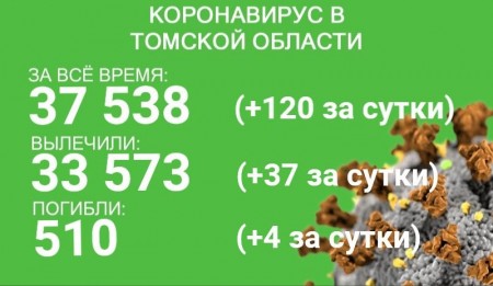 По состоянию на 3 августа в Томской области зарегистрировано 37 538 случаев коронавируса. У 120 человек заболевание выявили в минувшие сутки. За время эпидемии излечились 33 573 пациента, 37 из них выздоровели за сутки со 2 по 3 августа.