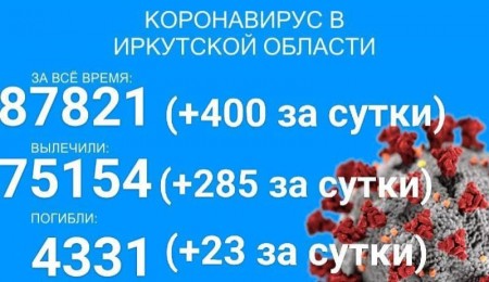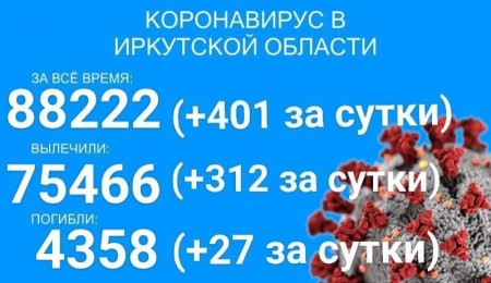По данным оперштаба Иркутской области на утро 6 августа, в регионе зарегистрировано 88222 официально подтверждённых тестами ПЦР случая заболевания коронавирусом. Прирост за сутки составил 401 новый случай, в том числе трое вахтовиков и 17 детей до 17 лет.
