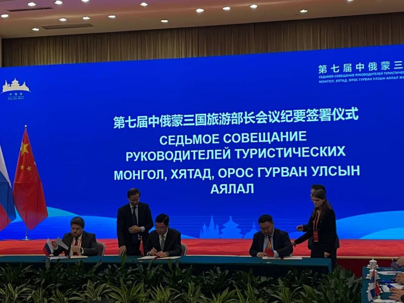 Соглашение о развитии «Великого чайного пути» подписали заместитель министра экономического развития РФ Дмитрий Вахруков, замминистра культуры и туризма Китая Ду Цзян и заместитель министра окружающей среды и туризма Монголии Мьягмаржар Ганбаатар.