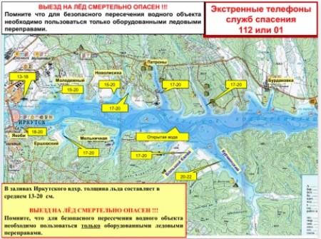 На официальном сайте ГУ МЧС России по Иркутской области появились карты рисков с указанием толщины льда наиболее популярных у местных жителей рек и водохранилищ. Данные будут обновлять каждую неделю.