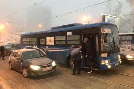 Дорожный инцидент с участием общественного транспорта произошел утром 21 декабря на Глазковском мосту в Иркутске. Въезжая на мост, друг в друга врезались пассажирский автобус №80 и автомобиль Subaru, тем самым практически перекрыв трамвайные пути в направлении центра города.