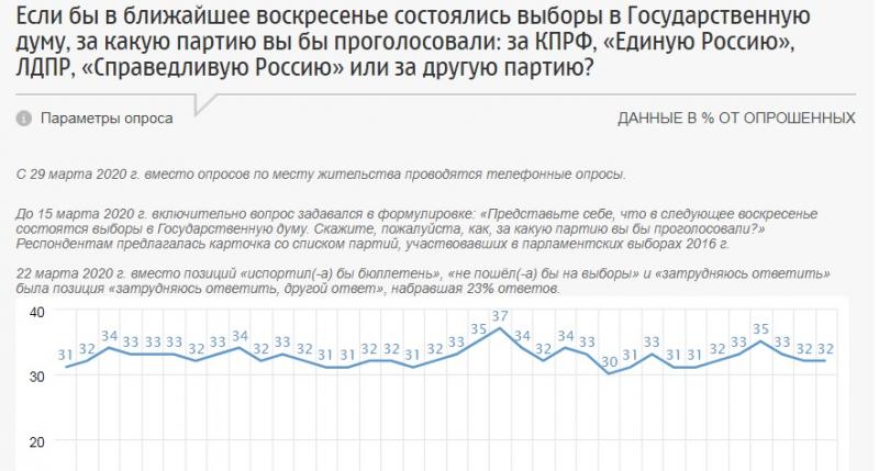 То есть недовольных «Единой Россией» в целом по стране значительно больше, чем тех, кто одобряет ее работу. Но еще печальней ситуация с жестким рейтингом. Если бы выборы состоялись в ближайшее воскресенье, за «партию власти» пошли бы голосовать только 31-32% опрощенных.