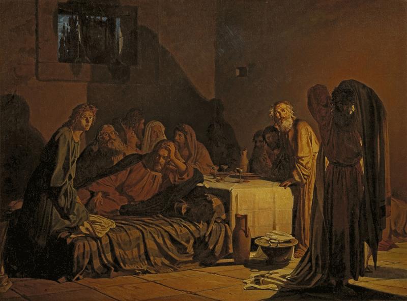Успех и признание пришли к Николаю Ге в 1863 году после того, как он выставил в Петербурге картину «Тайная вечеря». Полотно было выкуплено в личную коллекцию императора Александра II, а его автор возведён в звание профессора и принят в Действительные члены Императорской Академии.